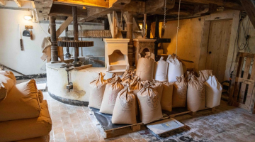 De watermolen in Sint-Maria-Latem wordt al vermeld in het jaar 1412 en maalde onafgebroken tot 1954. “Toen Jochen en ik de molen vier jaar geleden kochten, was dit monument aan een grondige restauratie toe. We zagen het grote potentieel om er terug een bloeiende economische activiteit in te ontwikkelen”, vertelt Emmanuel. Met hulp van het Agentschap Onroerend Erfgoed restaureren ze de graanmolen en de bijhorende taverne terug naar de toestand van rond 1890. “In de graanmolen produceren we nu reeds op steen gemalen graan met waterkracht, zoals het eeuwenlang gebeurde. Het meel leveren we aan bakkers, winkels en restaurants in heel België. Ook de Rode Duivels eten brood gemaakt van ons meel”, lacht Emmanuel, “Anderzijds is er de taverne die heinde en verre bekend staat om de pannenkoeken. Als de restauratie goed gaat, gaat die in de zomer van 2027 weer open.”