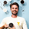 Daan Raemdonck is handelsingenieur en werkte vijf jaar in strategische consultancy, gevolgd door vijf jaar bij Alpro, waar hij als marketingdirecteur verantwoordelijk was voor het portfolio melkalternatieven. Trends detecteren, innovaties lanceren, nieuwe categorieën ontwikkelen: het zat in zijn DNA. Na tien jaar loondienst nam hij tijd om na te denken over wat hij écht wilde doen. Tijdens die periode stootte hij op een studie van de Universiteit van Oxford die voedingsproducten rangschikte volgens hun CO₂-impact. “Dat cacao en koffie zo hoog stonden, wist ik niet.”