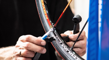 Fietsbanden aan banden leggen